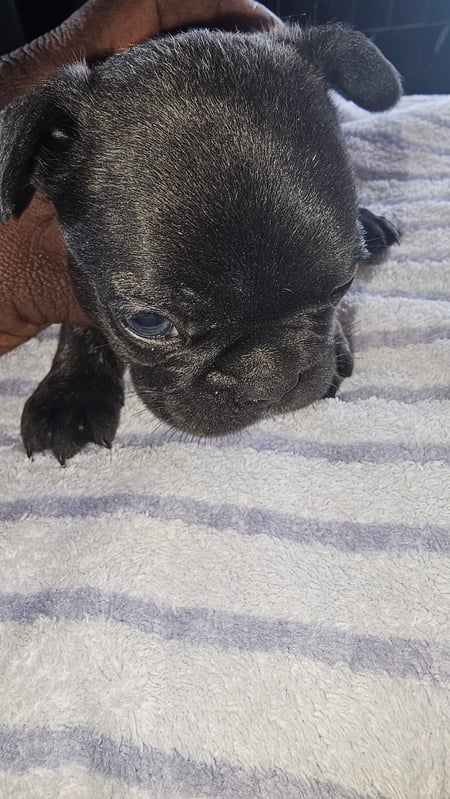 Discover our beautiful Black Brindle Frenchie puppy, ready for rehoming in Wichita, Kansas, or anywhere in the U.S. With her sleek black brindle coat, she’s a playful and loyal companion. Available for pickup or nationwide shipping starting October 1st, 2024.